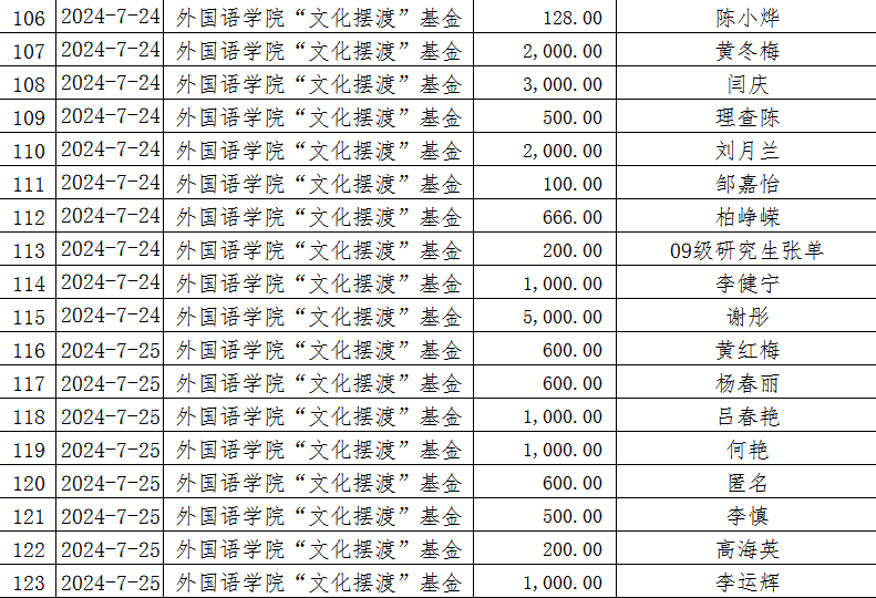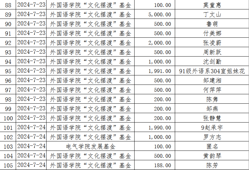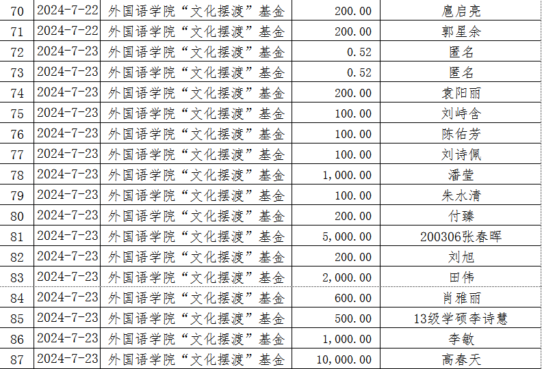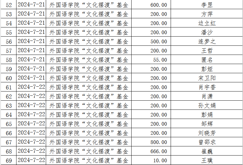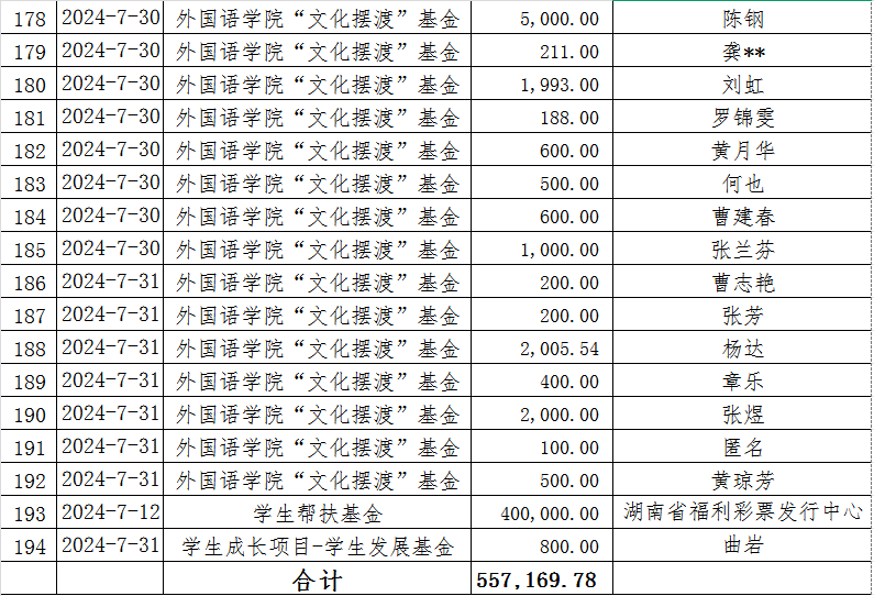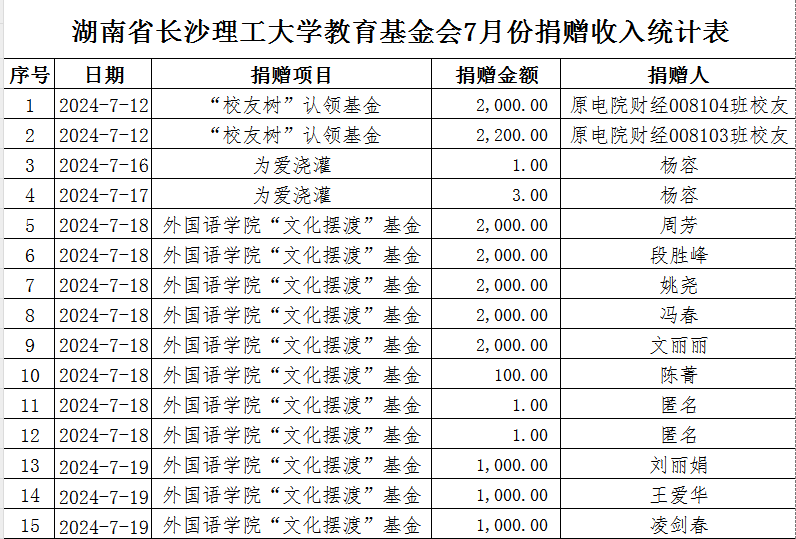 湖南省威廉体育williamhill教育基金会2024年7月捐赠收入表
