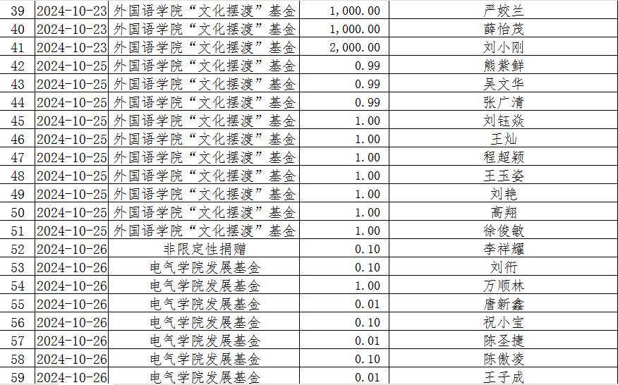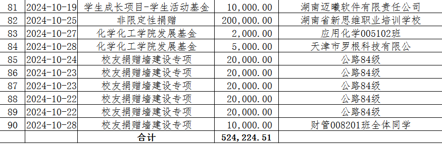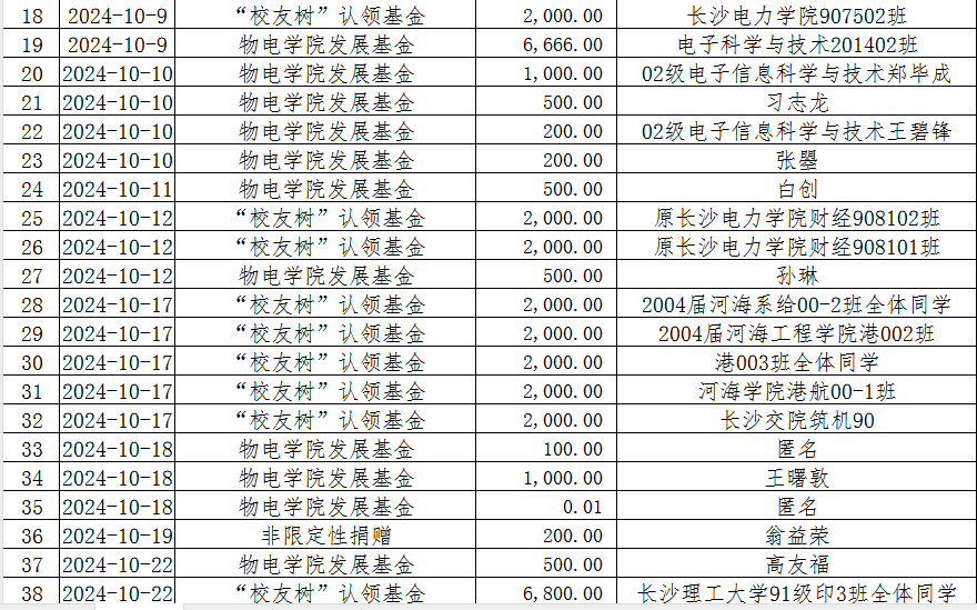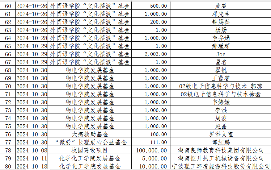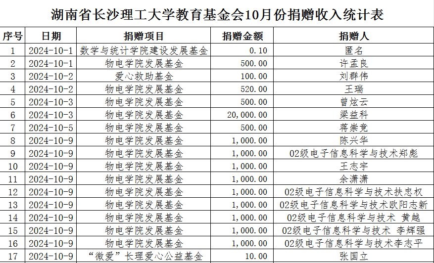 湖南省威廉体育williamhill教育基金会2024年10月捐赠收入表