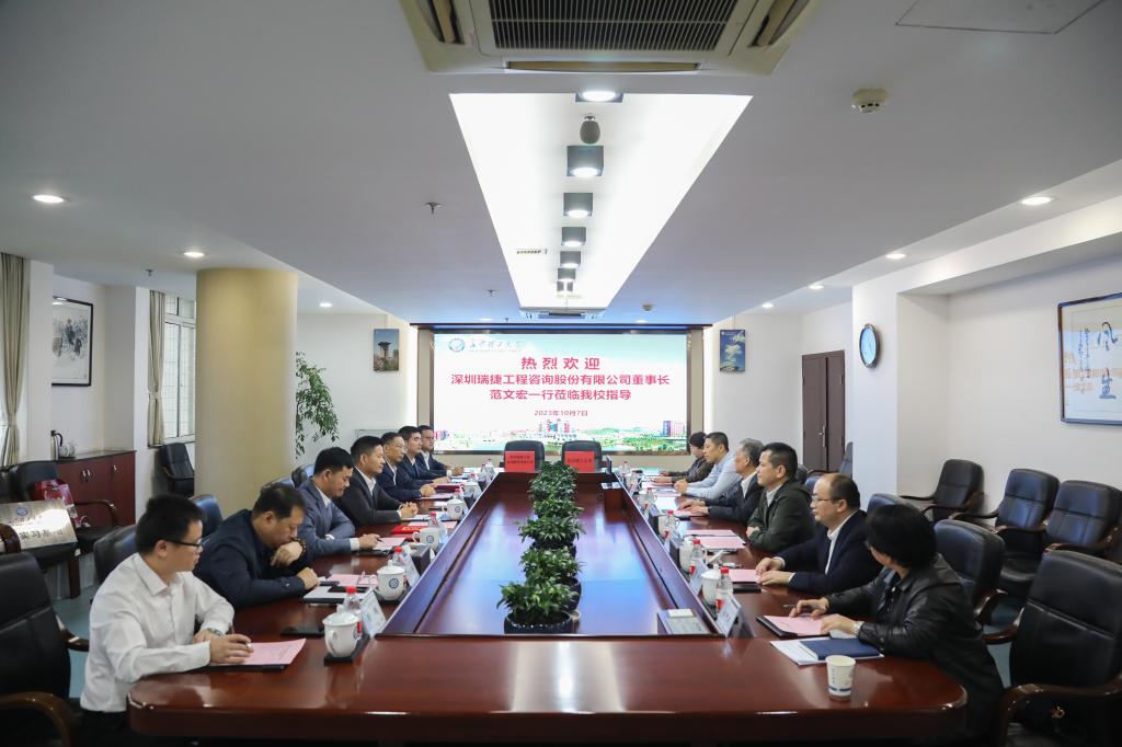 10月7日下午,深圳瑞捷工程咨询有限公司董事长、94级校友范文宏,深圳校友会副会长宁向一行回访母校,与学校进行合作洽谈。会前,校党委书记付宏渊会见范文宏一行。副校长谈传生及相关部门负责人出席校企合作签约仪式。范文宏回顾了自己在母校的求学经历和在深圳的创业历程,介绍了公司的发展情况,表示个人和企业的发展离不开学校的培养,感谢老师们的教育和指导。他希望母校在项目研发、资源对接等方面给予企业更多支持,在人...