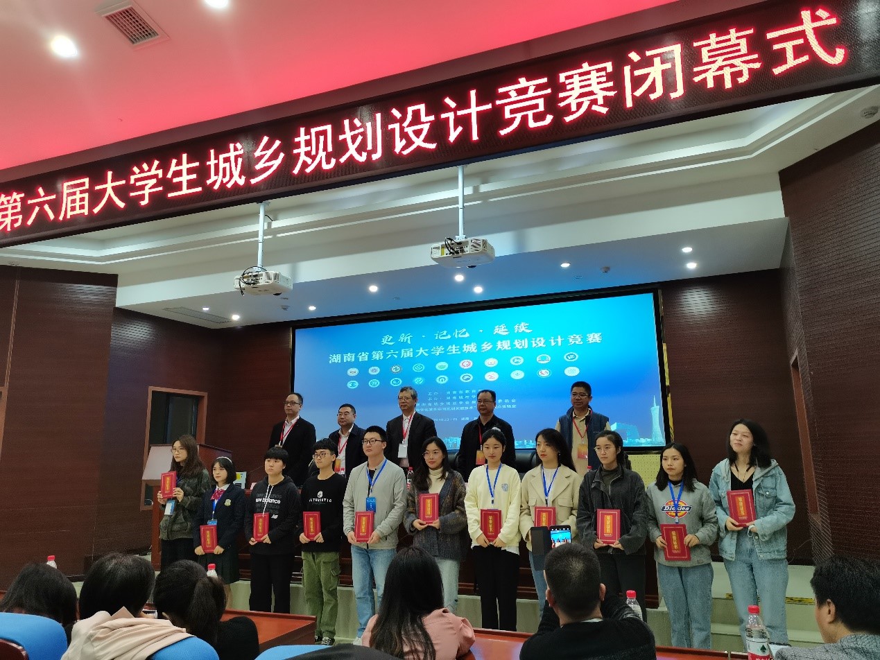 10月24—25日,为期2天的第六届湖南省城乡规划设计大赛在湖南城市学院举行,我院取得竞赛奖和组织奖双丰收的好成绩。城乡规划系和建筑系张薇、王舒萱、林松、杨子银、马云飞、王青等6名同学在专业教师的指导下,在本次竞赛中再创佳绩,分别获得一等奖3项、二等奖1项、三等奖2项。我院熊鹰副院长、唐常春副院长,规划系徐海燕老师、俞晓莹老师领队驻场参加,喜获优秀组织奖一项。
