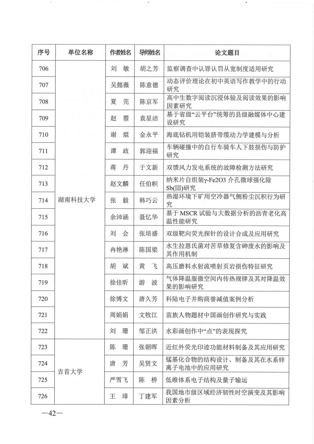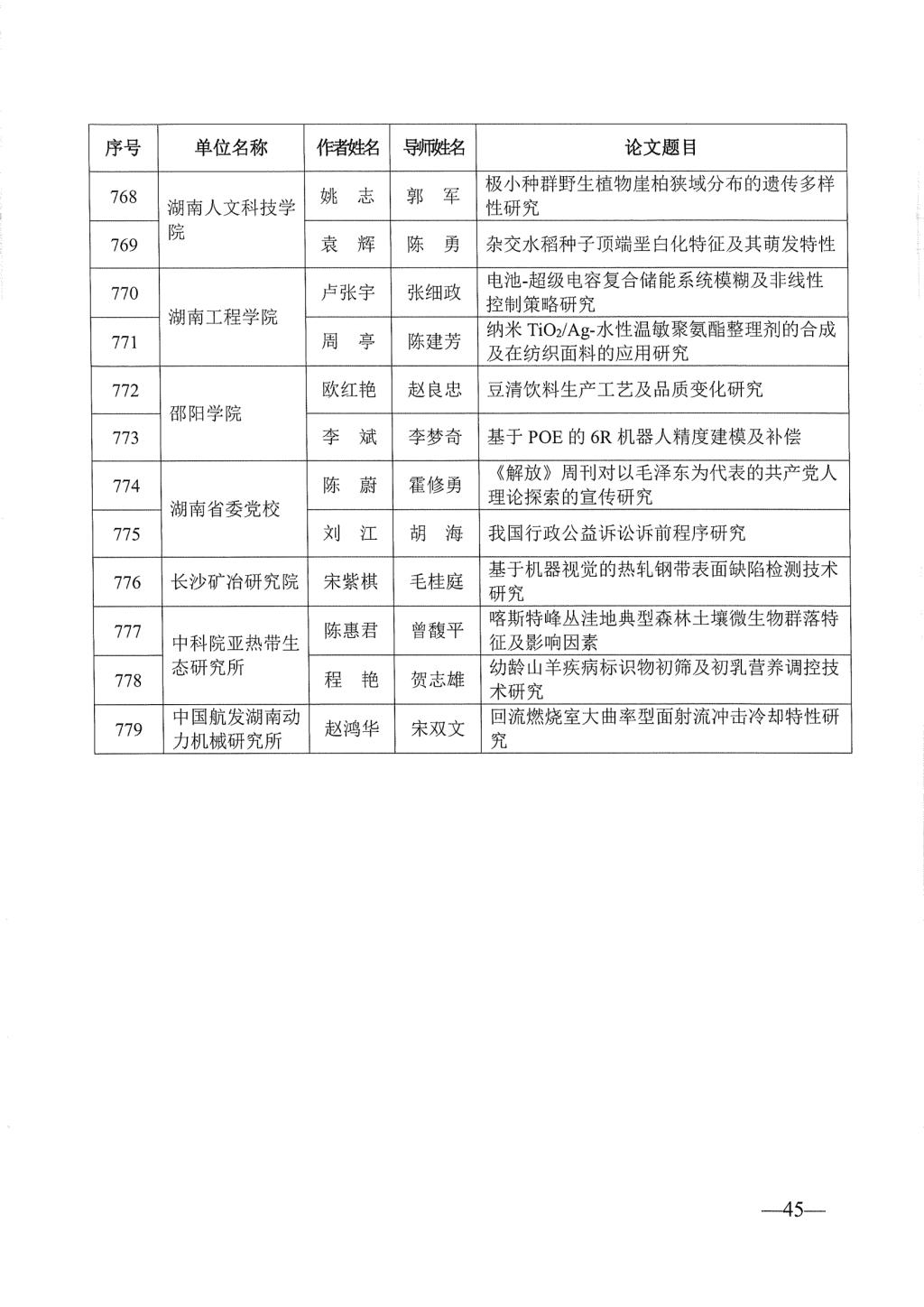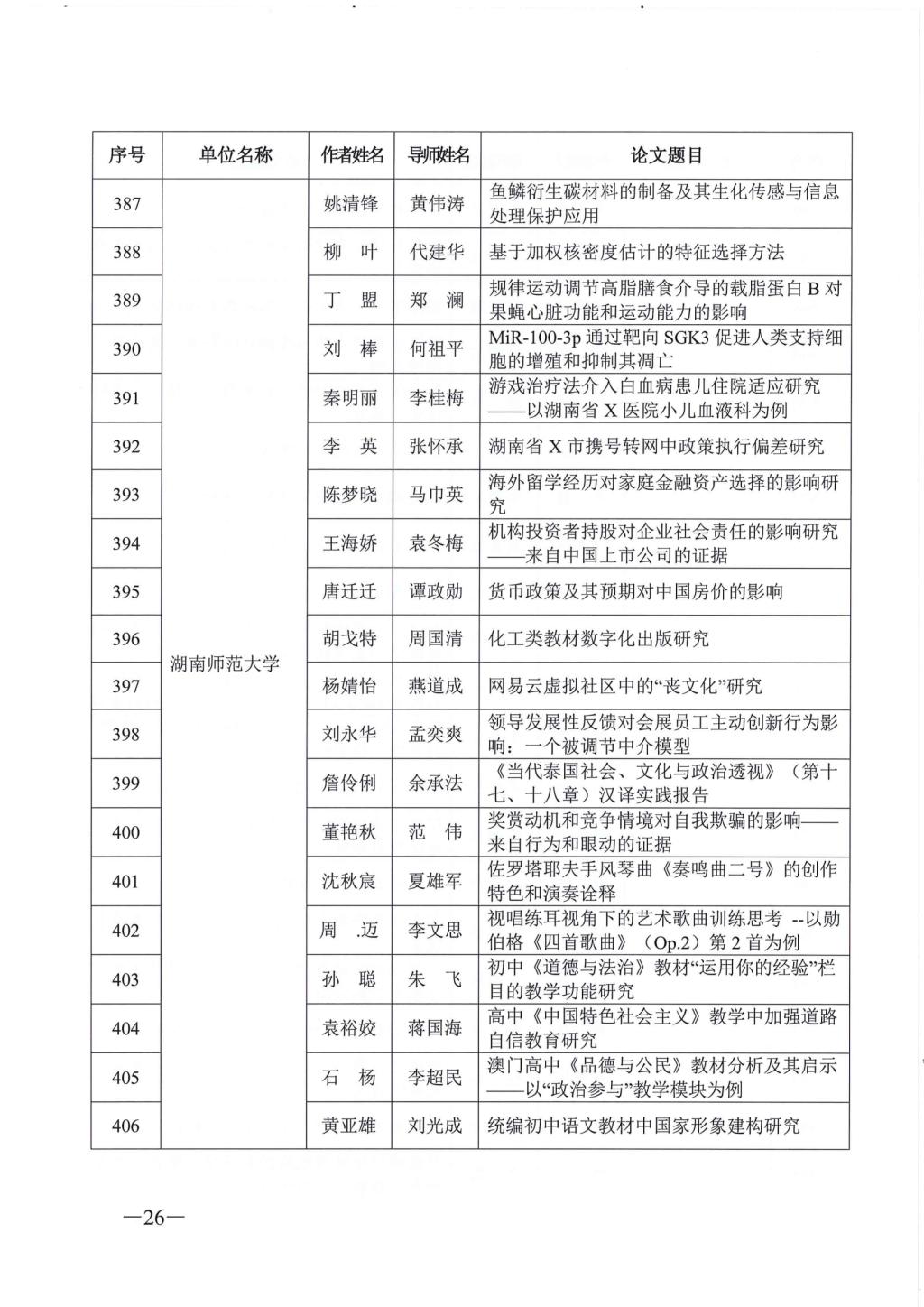 关于公布2023年湖南省优秀博士硕士学位论文名单通知