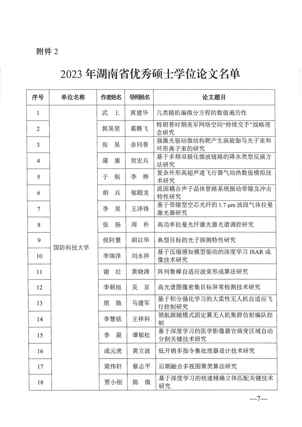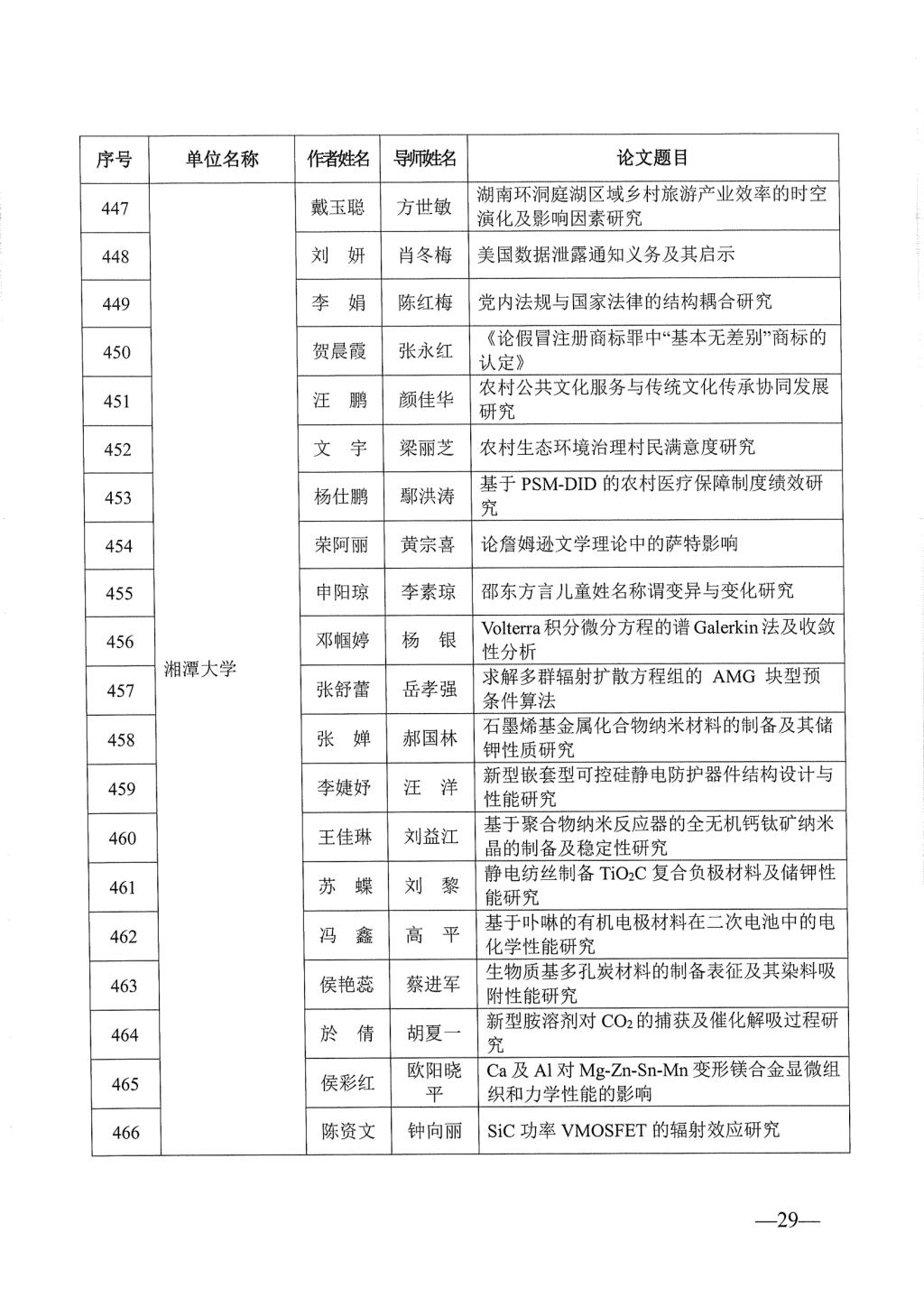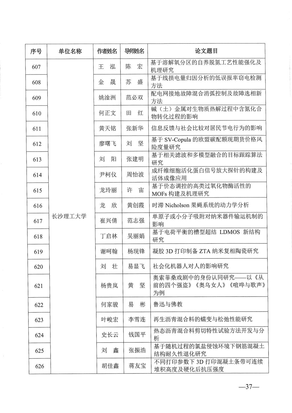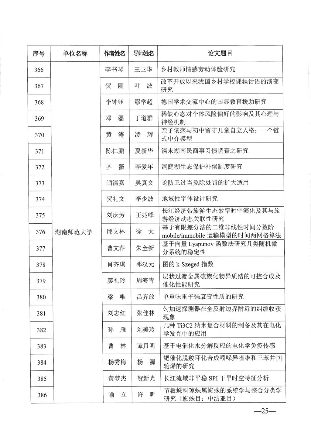 关于公布2023年湖南省优秀博士硕士学位论文名单通知