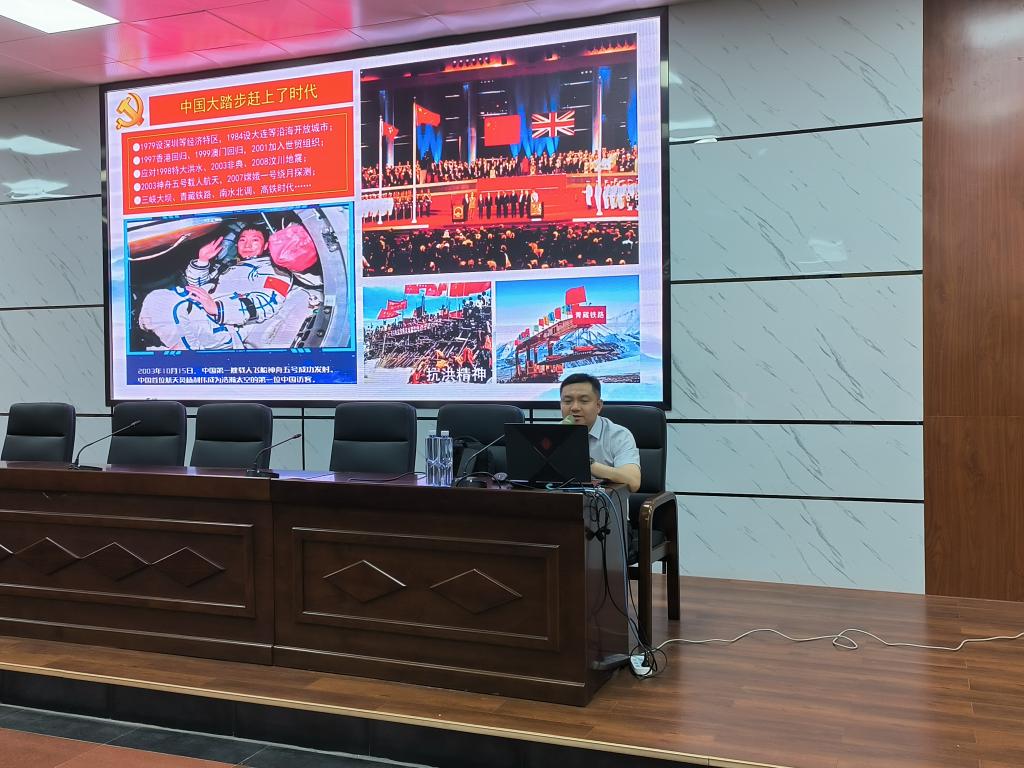 熊鹰书记以“党的奋斗历程”为主题,介绍了中国共产党的成立历史及奋斗过程,指出中国共产党是中国工人阶级的先锋队,是中国人民进行自我解放和实现中华民族伟大复兴的领导核心。详细阐述了中国共产党的奋斗历程从南昌起义、秋收起义、抗日战争、土地改革、社会主义建设等多个方面讲解了中国共产党成立以来坚守初心使命,不断进行理论探索和自我革命的生动事迹。同时,他还分析了中国共产党的奋斗历程核心、关键和动力,强调了中国共产党始终坚持以人民为中心,保持先进性,团结奋斗的理念和行动。