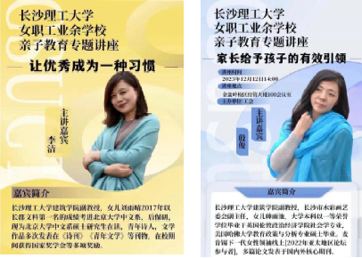 李洁教授则从更为微观的角度来进行了经验分享。李洁的讲座主题为“让优秀成为一种习惯”,她主要从陪伴、培养良好的学习习惯、创造良好的环境、尊重爱好、心态决定成败五个方面来分享自己亲子教育经验,讲述了自己女儿成长之中的点滴经历、女儿从小到大养成的好习惯、以及自己作为母亲是如何陪伴女儿度过挫折等。她还分享了自己女儿对于一些家长关心问题的看法,如:“在成长过程中对自己影响最大的人或事?对自己帮助最大的习惯?在学习中最注重的方面?是否有参加的比赛经历和学生干部经历?这些经历对自己的帮助?”等来帮助家长更好理解、教育孩子。