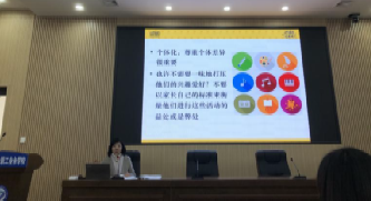 讲座上,两位教师结合其生活中的真实案例以及自己的亲身经历,用幽默生动的语言,讲述了亲子间的教育心得与方法。