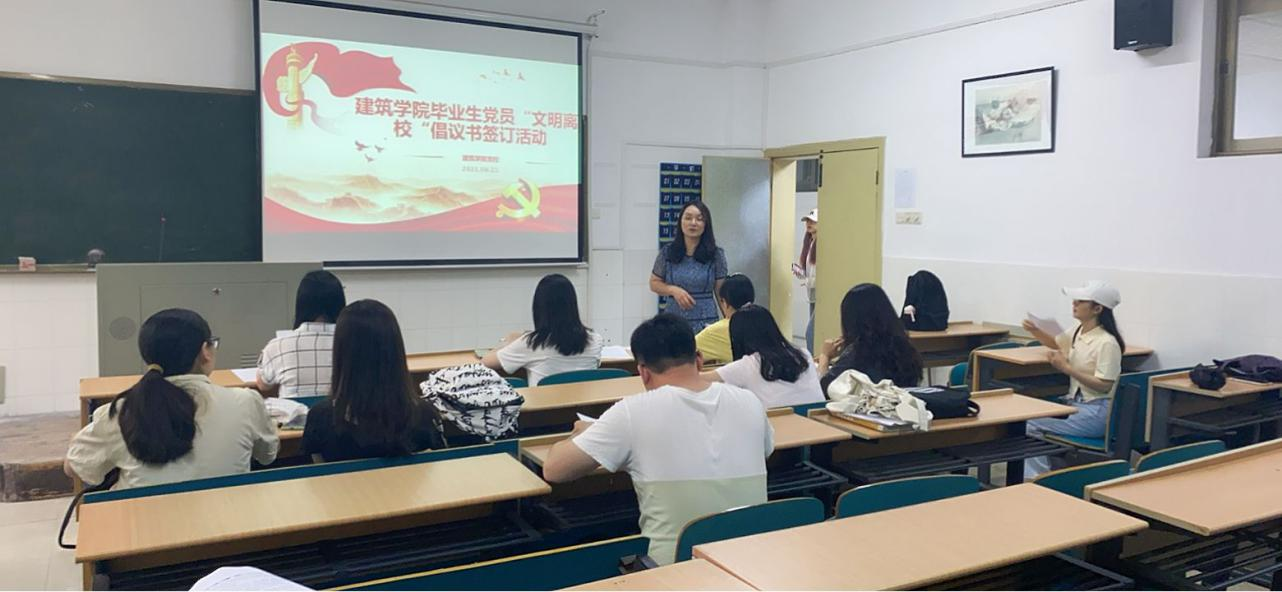 为进一步加强毕业生党员教育,充分发挥先锋模范作用,威廉体育williamhill建筑学院于6月22日上午开展组织毕业生党员签订《建筑学院毕业生党员文明离校倡议书》暨毕业生党员文明离校示范岗活动活动。