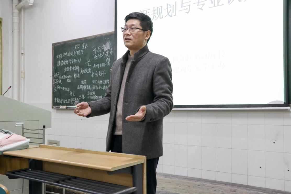 12月20日晚,生涯规划与专业认知辅导于16教学楼313教室展开,此次活动由建筑学院副院长欧阳国辉主讲,党委副书记谢士成主持,全体2018级新生参与。