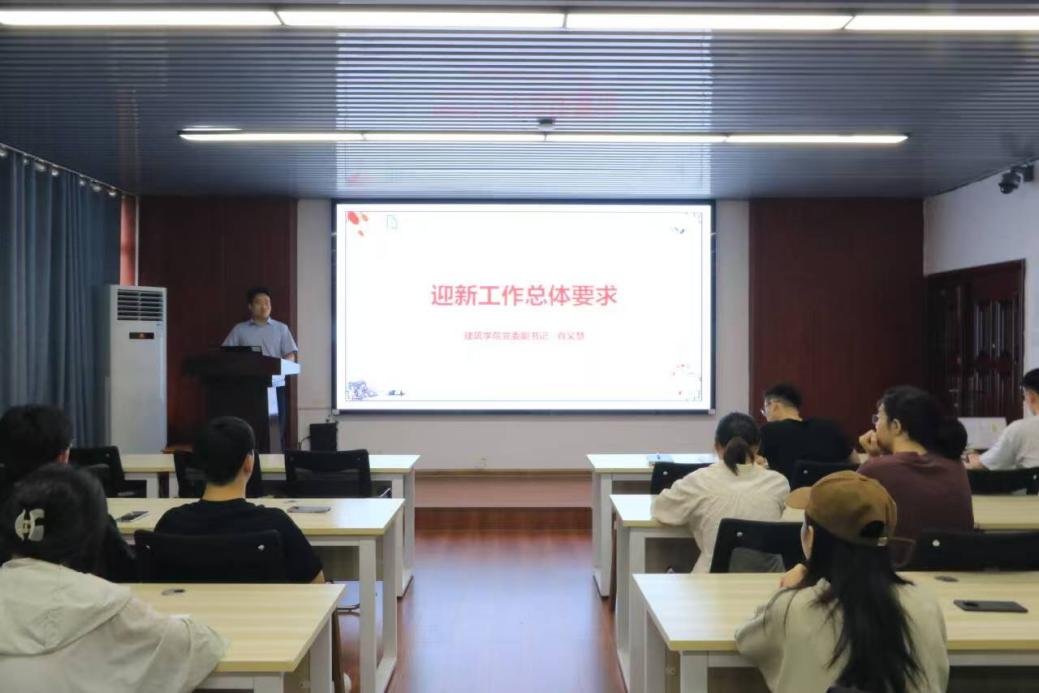 为确保2025级新生迎新工作有序、高效、温情开展,2025年9月9日下午,建筑学院组织召开迎新志愿者、下班党员及下班干部专题培训会。学院党委副书记肖义慧、新生辅导员王宇霖、第九届团委学生会主席张望出席会议,全体迎新工作人员参会。