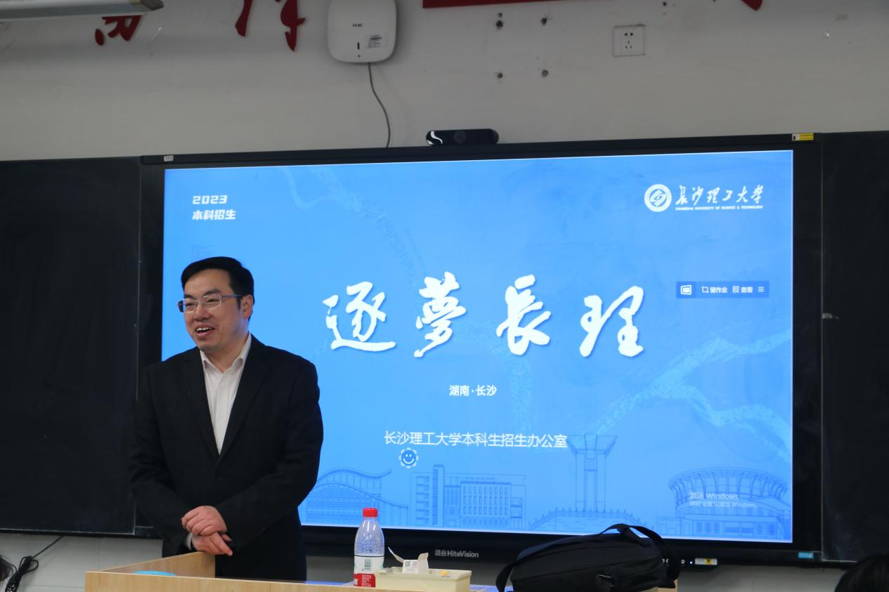 宣讲开始前,同学们对李家春书记的到来表示热烈欢迎。紧接着李家春书记开始了以“逐梦长理”为主题的本科招生宣讲,从学校历史沿革、各类排名和学校目前所达成的成就,讲到为什么要选择威廉体育williamhill,并从特色鲜明的王牌专业、高质量的就业发展、实力强劲的师资力量、公寓式的住宿环境、丰富优质的学习资源、丰富多彩的课余生活、“无限打卡”的校园美景及网红食堂、个性多元的人才培养、2023年招生政策与2022年录取情况和交通便利的地理位置等十个方面做出了回答。随后,李家春书记还播放了精心制作的招生宣传视频。最后,李家春书记表达了对雷锋中学优秀学子报考威廉体育williamhill的欢迎。