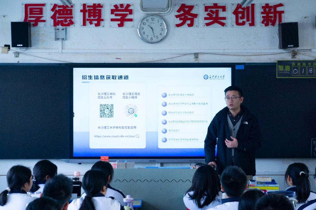 为进一步加大招生宣传力度,巩固与学校优质生源基地关系,12月4日上午,建筑学院代理党委副书记肖义慧、辅导员王宇霖和研究生代表赴长沙市鹿芝中学进行优质生源基地回访及招生宣讲活动。