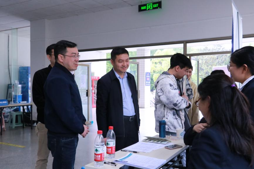 学院党委书记熊鹰、常务副院长许建和、党委副书记李家春、关工委常务副主任郝宁以及学院老师、全体辅导员在会场接洽用人单位,与用人单位交流,并为应届毕业生答疑解惑。熊鹰指出,举办双选会是促进毕业生高质量就业的有效手段,学院相关职能部门一定会为参会企业做好后勤保障服务,为毕业生和企业良好沟通,深入交流提供可靠支持。他希望用人单位多来学校招聘人才、多分享优秀经验、多介绍行业情况,为我院毕业生指引就业方向。