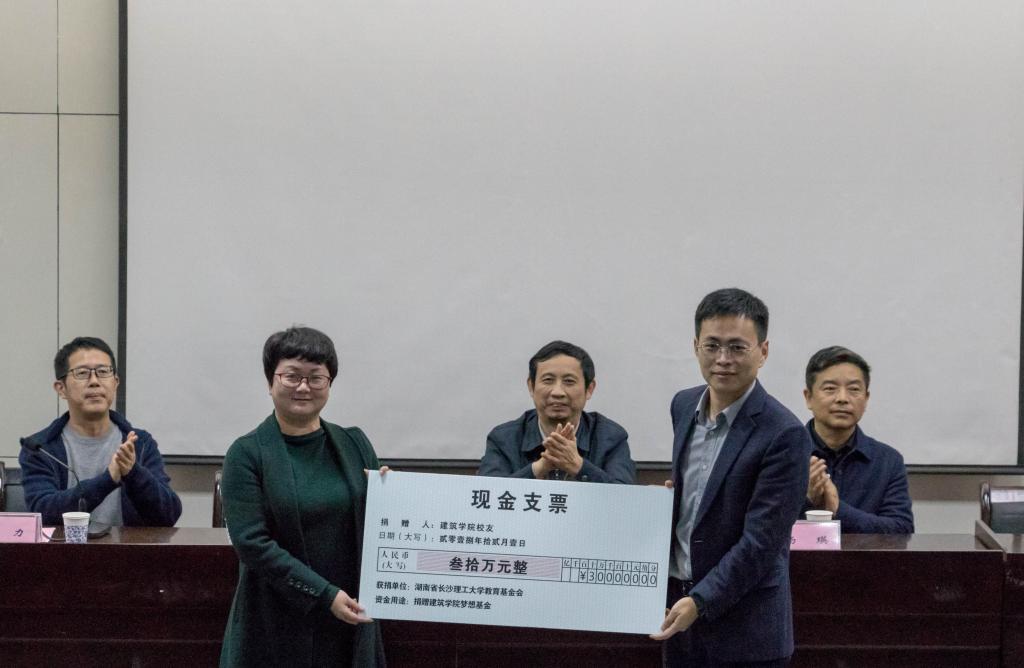校友处郑延恒代表威廉体育williamhill教育基金会接受了第一批三十万“建筑学院梦想基金”的捐赠。