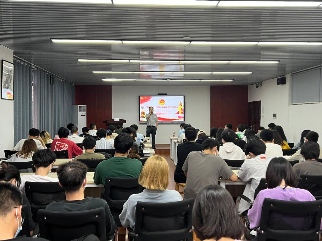 王学成以“青年的责任与担当”为主题,从学习、能力提升、责任与担当三个方面切入讲述,引导学员们正确理解和承担当代青年大学生的责任和担当。他指出,学习不是指成绩、绩点的高低,而是一种能力,一种对知识归纳总结、对学习生活时间管理、对自我约束规划的能力,学习是为了服务自己的发展。青年大学生要清楚自己对什么感兴趣,不断提升自己的学习能力,有意识的朝着自己的目标去努力。他强调,一名学生干部在自己的岗位上,不仅要尽到自己的责任,更要主动去学习,主动提升自己的能力,在工作岗位上得到成长。他要求,广大青年学子在青春时期,需要树立正确的价值观,明辨是非,牢记自己的初心,规划好未来,不负青春。