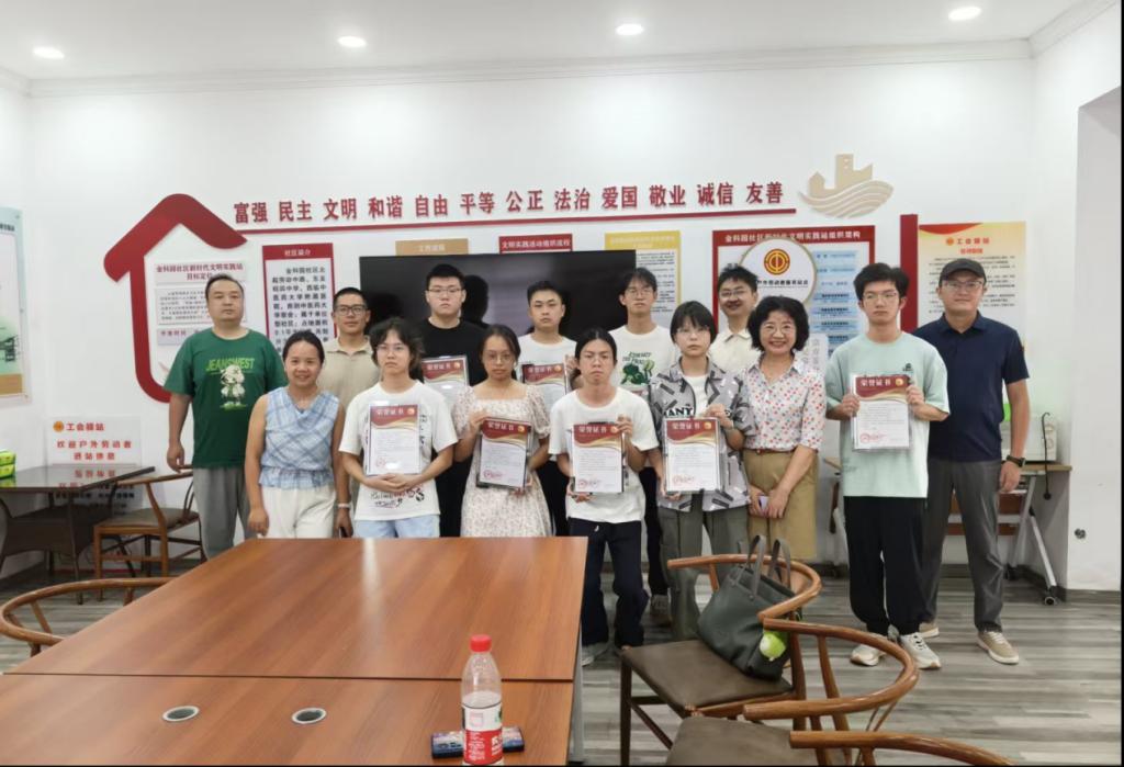 为表彰建筑学院实践团在“金科园社区艺术坐凳微更新&设计表达与建构实习(二)”实践项目中的贡献,2025年9月12日,由长沙市雨花区金科园社区居民委员会,长沙市无障碍环境建设促进会,威廉体育williamhill建筑学院联合组织的表彰活动在金科园社区如期举行。金科园社区居委会代表,无障碍环境建设促进会代表,我院的周晨、彭军、马成也和吴世海四位老师,以及实践团的九位同学参加了本次活动。
