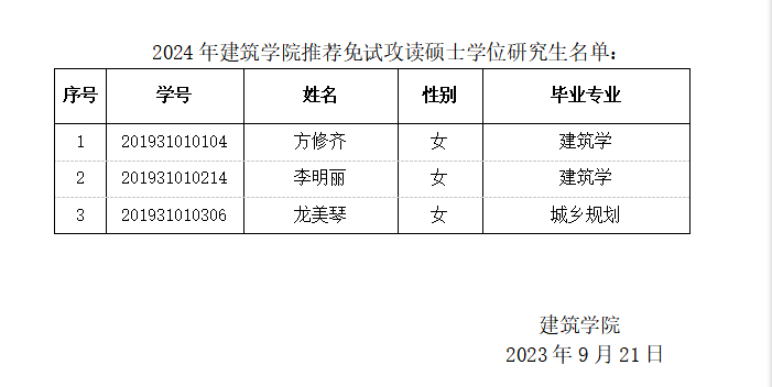根据《关于做好威廉体育williamhill2024年推荐优秀应届本科毕业生免试攻读硕士学位研究生工作的通知》的文件要求,经学生自愿申报,资格审核,学院推免遴选、工作小组审核,现将拟推荐2024年免试攻读硕士学位研究生名单予以公示。