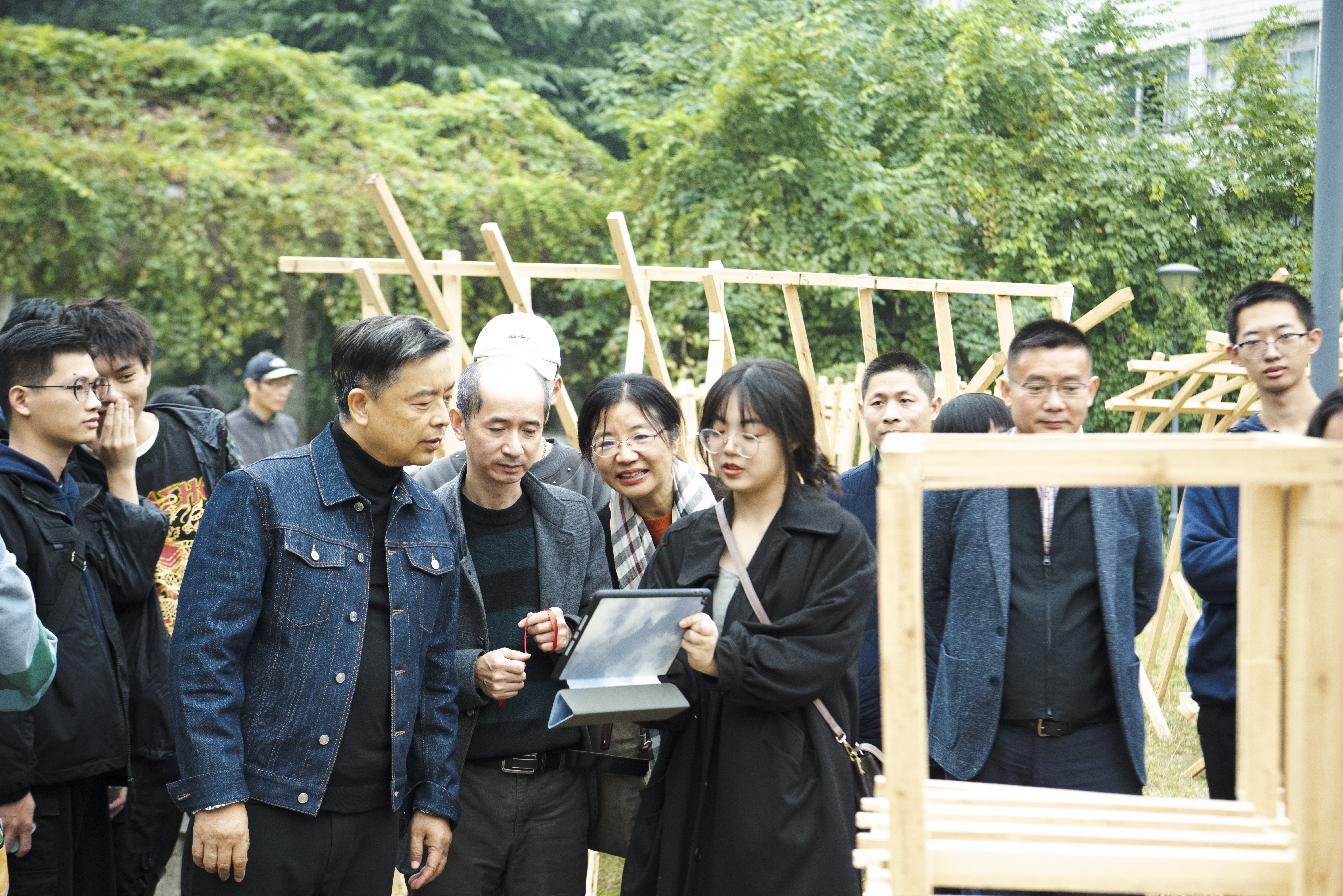 在评阅成果时,杨瑛大师肯定了建筑学院课程教育的成果以及20级学生的努力和坚持,对一些作品的创意和结构做法表示赞赏,并针对作品存在的问题给予耐心的指导,同时他也指出了部分作品存在雷同现象,创新性还有待提高等问题。汤明董事长从自己曾经在国内和新加坡的设计学求学经历中看到了国内设计教育的进步,对未来校企合作表达了极大的热情,也欢迎同学们向该公司目前从事的幼儿建构设计方向创新创业。建构课程负责人吴荻子强调了本次木构的主题,介绍了评阅的标准和规则。整个评阅过程师生和乐融融,气氛良好,同学们纷纷表示有很大收获。“通过这次木构实习,我们熟练地运用了专业知识,明白了实践的重要性,把理想和现实结合起来,激发了潜能和设计想法,互帮互助、团结合作,不仅学到了知识还收获了友谊。”“木构实习让我们了解了设计落地的难度,也提醒了我们设计需要功能合理和场地融合,我们相信我们能把建构的经验融入以后的作品中,为国家建设作出青年人的贡献。”