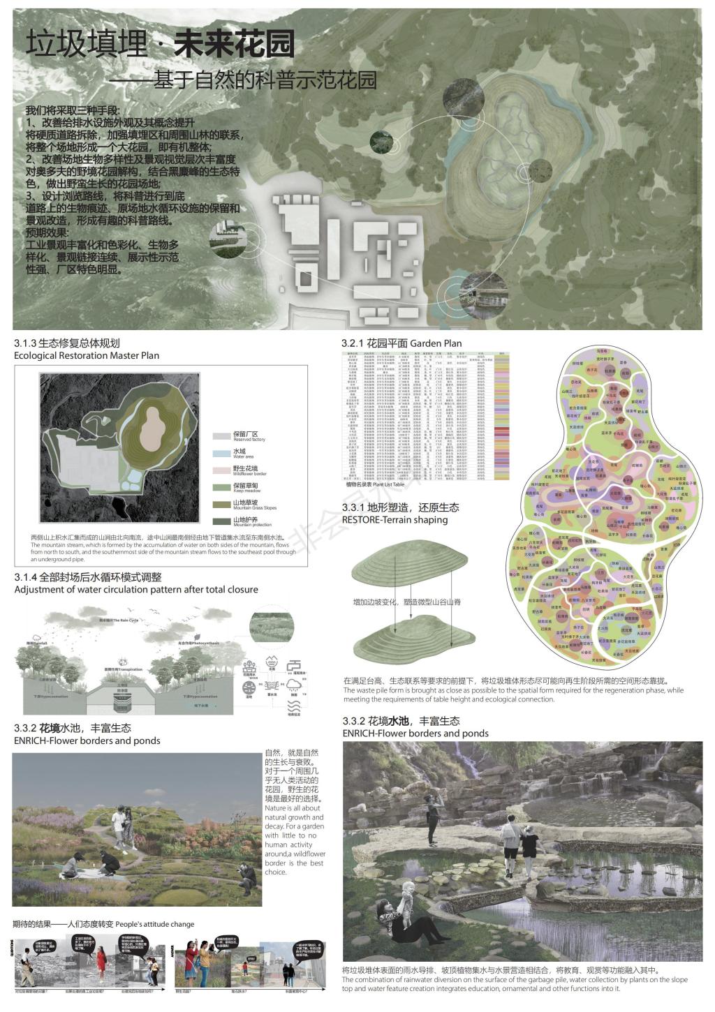 在周晨老师、熊辉老师、曹盼老师的联合指导下,我院风景园林系大二学生黄皓、罗佳钰与各高校研究生为主的竞赛团队同台竞技中,以“垃圾填埋,未来花园”为主题的设计作品荣获竞赛三等奖。此与此同时,方案被评为此次竞赛中最具特色的创意方案将与一等奖获得者的江苏大学团队组成后续深化成果设计团队,探索设计成果的落地实践。