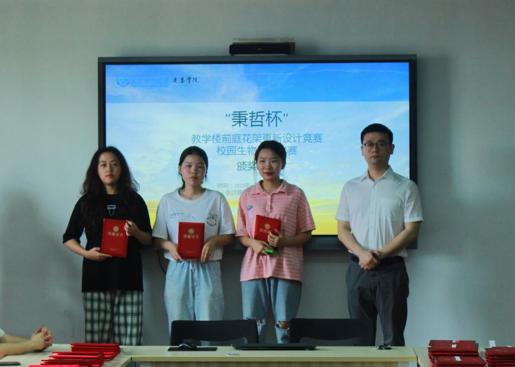 为表彰建院学子在竞赛中取得优秀成果,621下午哲杯”教学楼前庭花架更新设计竞赛校园寻踪比赛颁奖典礼16314召开,此次仪式由王茜老师主持建筑学院副院长周晨、党委副书记李家春、团委书记王宇霖、风景园林系主任熊辉、长沙秉哲科技有限公司总经理葛可出席此次颁奖典礼面向建筑学院获奖学生。