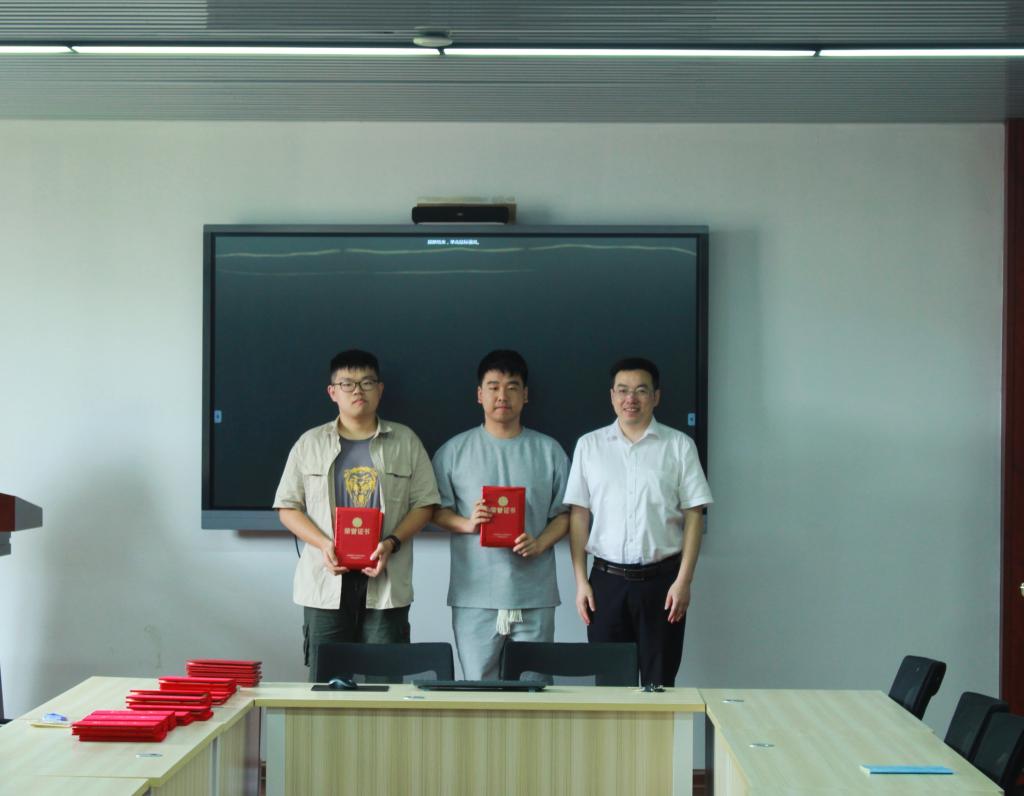 典礼伊始,晨老师介绍了两次竞赛的情况,她向受表彰的同学们表示衷心的祝贺,对同学们付出的努力表示充定与扬。此外,她悉心叮嘱希望同学们以此次比赛为起点,不断学习、奋进。葛可先生也针对此次竞赛与同学们进行了深入交流他提到,同学们应坚定理想信念、坚定奋斗意志、坚定恒心韧劲,努力学习知识本领,于次竞赛开拓视野,促进专业学习