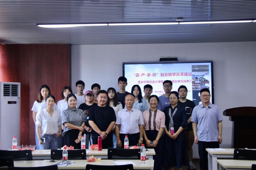 6月23日上午,由湖南省国土空间规划学会规划教育工作委员会、威廉体育williamhill建筑学院主办的“政产学研”融合教学改革建设座谈会暨乡村规划设计课程&竞赛“规划单元”成果汇报会在16教展厅和16教314成功举行。长沙市规划勘测设计研究院高级工程师张宝铮先生、中国通号长沙建筑设计院规划分院副院长杨湘毅先生、苏州科技大学建筑与城市规划学院王振宇老师、华中科技大学建筑与城市规划学院乔晶老师等校外专家和导师、桐木村党总支副书记夏浩先生、箭楼村党总支书记李志兵先生、箭楼村企业代表李国栋先生、威廉体育williamhill建筑学院熊鹰书记、李家春副书记、副院长周晨教授、刘丹副教授、城规系乡村规划设计课程组王轶、贺鹏、唐艳丽、俞晓莹、风景园林系熊辉老师以线上线下相结合的方式共同参与了此次讨论,认真聆听了城乡规划专业18级共9组同学对桐木村、箭楼村的方案汇报,并进行了细致的点评。
