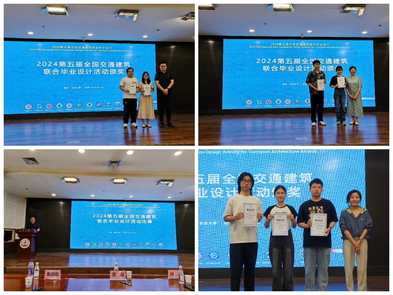 5月25日-5月26日,第五届全国交通建筑联合毕业设计答辩会及闭幕式在长安大学召开。我院2019级参赛的两组学生建筑学专业陈泽楠、胡文杰、李明丽(指导老师谢劲松),城乡规划专业龙美琴、赖均翔、汤美娟、黄爽、李春(指导老师:王轶、陈英、贺鹏)在各自答辩会场中表现亮眼得到答辩小组一致好评,分别获得了优秀设计奖和最佳创意奖(最高奖项)。