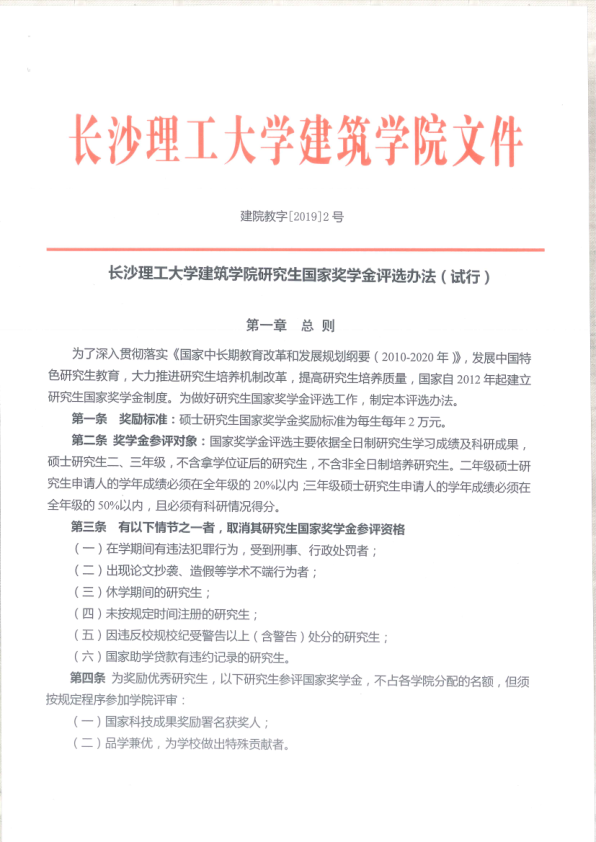 威廉体育williamhill建筑学院研究生国家奖学金评选办法(试行)