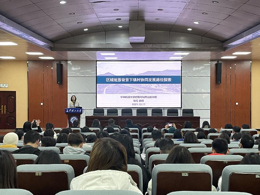 12月17日下午,中国城市规划学会理事、中国城市规划学会小城镇规划学术委员会副主任委员、全国城市规划硕士专业学位研究生教育指导委员会委员、中国学位与研究生教育学会城市规划专业学位工作委员会委员、住建部城乡规划专业评估委员会委员、湖北省城市规划协会副会长、华中科技大学耿虹教授应邀在威廉体育金盆岭校区四教一楼报告厅主讲了《区域统筹背景下镇村协同发展路径探索》的专题讲座。本次讲座由建筑学院党委书记熊鹰主持。副院长刘丹及百余名师生现场聆听。