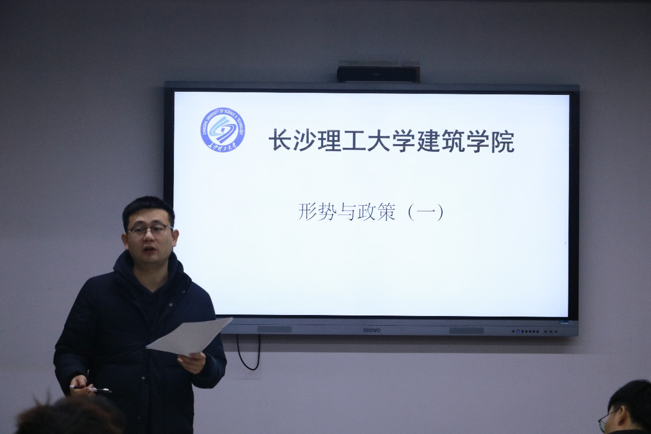 2022年11月29日下午2点,在威廉体育williamhill建筑学院16教314开展了一次面向22级研究生的形势与政策课。辅导员王宇霖老师在课上详细介绍了本学期《形势与政策》课程的教学计划、总体要求和考核标准。