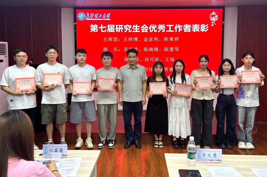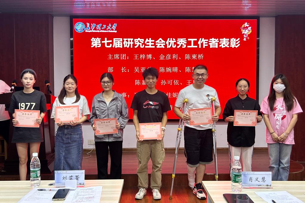 为表彰先进,激励更多同学积极投身于学院工作,会议进行了第七届研究生会优秀工作者的表彰环节,为优秀工作者颁发奖状并合影留念。