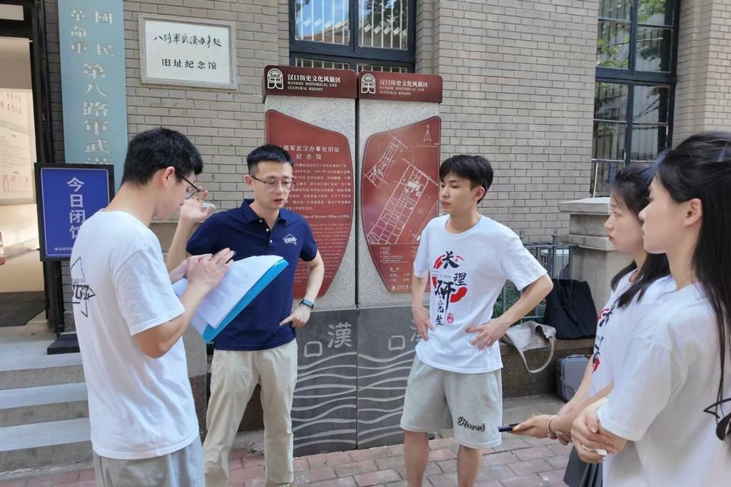 在调研过程中,团队成员深刻感受到这座历史建筑所蕴含的红色精神的强大生命力。怀着对革命历史的敬畏之心,师生们细致观察、严谨记录,力求精准解读建筑空间语言背后的革命印记。“八路军办事处是中国共产党在抗日战争期间重要的联络机构,其促进了抗日统一战线的形成,也为中国共产党各地区领导人指挥抗日战争事业提供了战略价值......”实践团队听武汉八路军办事处副馆长周强讲述道,让队员们深度了解了从南京八路军办事处到武汉八路军办事处再到长沙八路军办事处等五个办事处的历史脉络,深刻感受到八路军建立办事处历史线路的不易与艰辛。