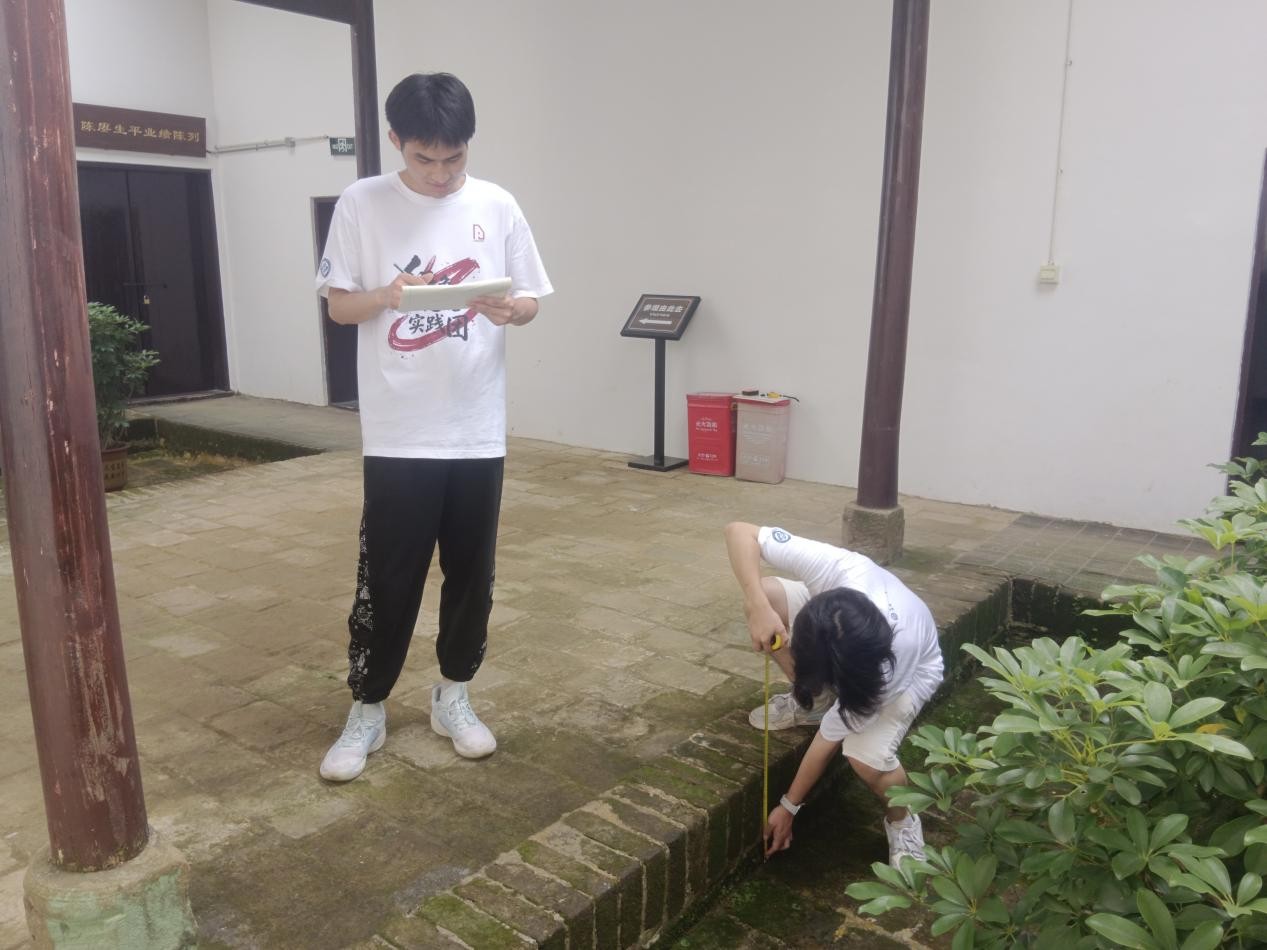 (实践团队在陈赓故居进行建筑剖面测量)
