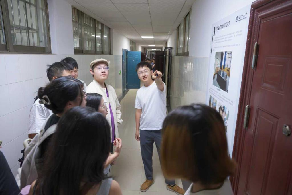 活动中,马成也老师首先带领新生参观了位于16号教学楼的各专业实验室,详细介绍了建筑模型实验室、数字建构实验室等空间布局、主要设备功能及各实验室安全负责人。在模型实验室,马老师重点讲解了实验室操作规范、仪器使用须知、实验室申请流程、器械操作方法及实验用品管理规定,并通过实际案例强调了安全操作的重要性。