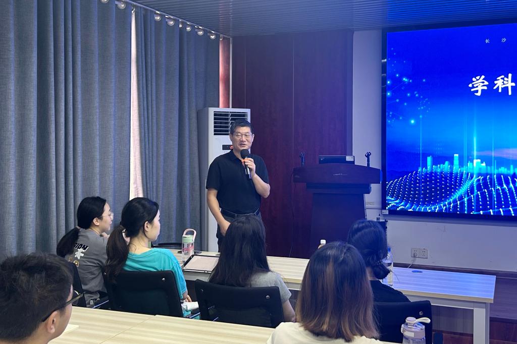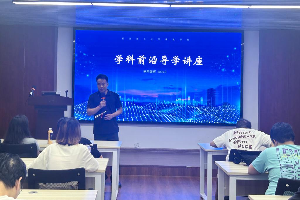 9月18日上午,建筑学院在金盆岭校区16号教学楼314教室举办了主题为“学科前沿导学”的专题讲座。本次讲座由建筑学院党委副书记肖义慧主持,特邀国家一级注册建筑师、湖南省建筑师学会理事、湖南省设计艺术家协会理事、我院欧阳国辉教授担任主讲人,2025级全体研究生新生共同参与聆听。