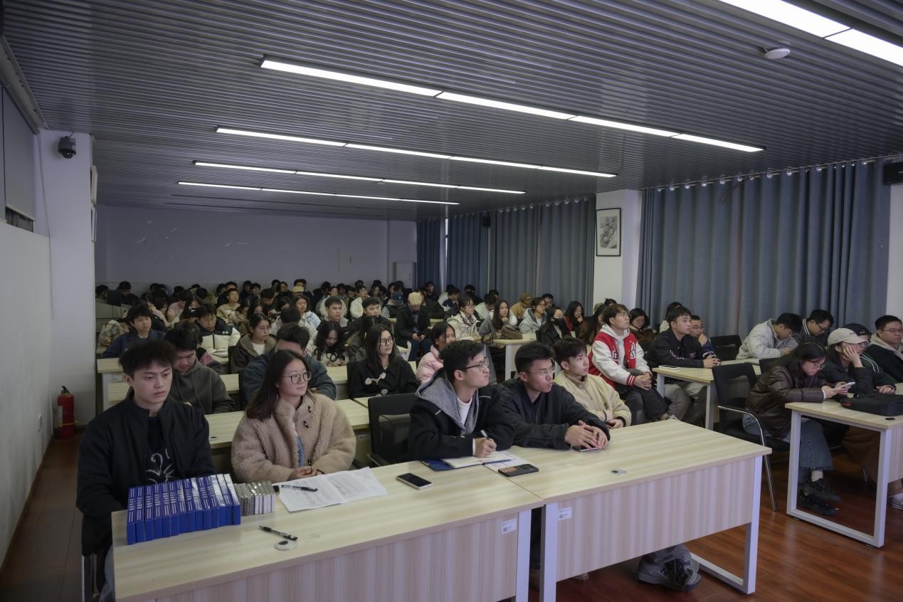 王宇霖首先就假期关键时间节点向同学们作出清晰说明,包括正式放假时间、下学期报到注册的具体日期以及开学第一周的教学安排,帮助大家提前规划好行程。针对有留校打算的学生,他详细讲解了留校申请的办理流程、假期间的日常管理要求以及必要的请假制度,并特别说明学院将建立动态管理机制,持续跟进留校学生情况,确保信息掌握及时准确