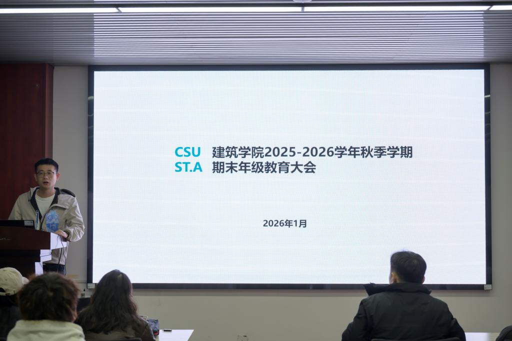 116日下午,建筑学院在16号教学楼314会议室召开2025-2026学年秋季学期研究生期末年级教育大会。会议由研究生辅导员王宇霖主讲,学院全体研究生参加,会议围绕假期管理、安全教育、留校安排等核心内容展开,为学生顺利度过假期、有序推进科研学习提供明确指引。
