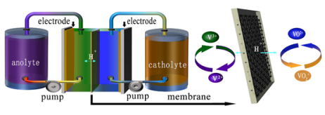 上述隔膜均为Nafion膜改性,仍然依靠进口“卡脖子”材料——Nafion。开发国产膜材料对液流电池产业化发展至关重要。团队丁美教授和贾传坤教授开发一种低成本绿色的磺化聚醚醚酮(SPEEK)/木质素(lignin)复合模,并成功应用到液流电池上。该膜表现出比Nafion优越的离子选择性及显著降低的钒离子渗透。在钒电池中表现出达到99.5 %的库伦效率,经过长时间循环后电池仍保持良好的性能。相关研究结果在材料类著名期刊膜科学上发表(Journal of Membrane Science, 2019, 572, 110–118,SCI一区,ESI 高被引论文)。论文第一作者为威廉体育williamhill与重庆大学联合培养博士生叶家业,威廉体育williamhill丁美教授、贾传坤教授为共同通讯作者。
