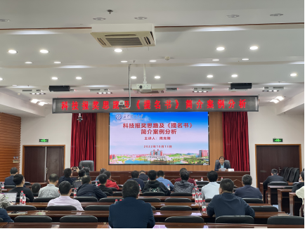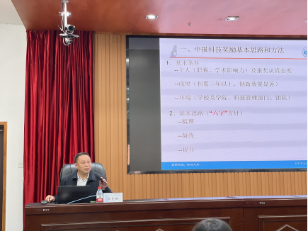 周克刚从科技奖励的重要意义、高校科技奖励成果的培育与遴选、我国科技奖励的状况与特点、科技报奖《提名书》的撰写注意事项等方面进行了详细讲解,用典型案例着重讲述了《提名书》中“项目简介”、“科技创新”等要点的梳理和凝练。周克刚强调,在报奖过程中,项目成果是基础,推荐材料是关键,答辩陈述是重点,信息沟通是保障。随后,周克刚结合以往科技奖励申报工作经验,同与会人员就科技进步奖、技术发明奖和自然科学奖申报过程中的细节问题进行了经验分享。(文图/陈铭言 审核/王媛媛)