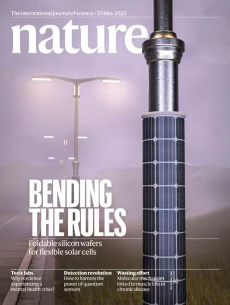 5月24日,国际顶级学术杂志《自然》主刊以封面文章形式刊发由威廉体育“湖湘学者”特聘教授刘小春科研团队和国内外多家科研机构团队合作完成的突破性研究成果。论文题目为《 Flexible solar cells based on foldable silicon wafers with blunted edges》。威廉体育williamhill为第三顺位署名单位,材料科学与工程学院刘小春博士和刘玉敬博士分别是论文的共同通讯作者和共同第一作者。文中,围绕晶硅太阳能电池制备中的关键科学问题,刘小春团队采用先进的双球差校正透射电子显微镜(以下简称TEM)表征技术,揭示了基片从本征“脆性”向轻质“柔性”转变的微观机理,为研发更轻质、更高效率、更低成本,可突破传统应用场景的柔性晶硅太阳能电池奠定了理论基础。