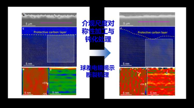 钝化处理前后太阳能电池片弯曲变形断裂形貌,及断裂面下方原子尺度结构
