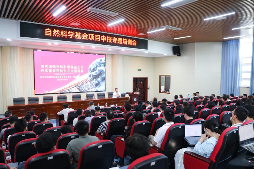 9月23日下午,科技处在云塘工科二号楼B-302会议室举办自然科学基金项目申报专题培训会。湖南省自然科学基金委员会办公室主任杨剑应邀作专题辅导报告。会议由副校长张军辉主持,科技处主要负责人,自科类学院分管科研副院长,科研主任及教师代表参加了本次会议。
