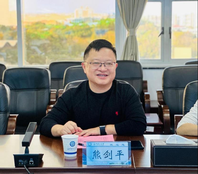 熊剑平非常感谢学校为集团公司培养了上百名优秀校友。他从广西新能源产业概况、广西交科新能源业务发展方向及现状、校企合作共赢三个方面详细介绍了目前广西交科新能源业务发展情况。希望积极探索人才联合培养模式加强与学校在人才交流培养、交能融合高质量发展、科技成果转化及应用推广等方面合作