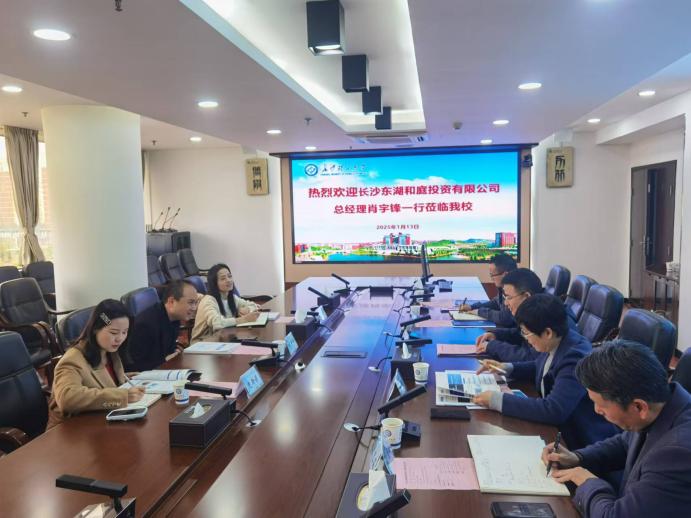 1月13日上午,长沙东湖和庭投资有限公司总经理肖宇锋一行来校调研交流。科技处处长胡林、卓越工程师学院院长韩艳、科技处副处长刘亚辉参加会议,会议由科技处副处长肖志高主持。