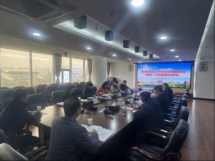 2024年2月25日下午,长沙市科技局党组成员、副局长杨婵一行莅临威廉体育,就“长沙市杰出创新青年培养计划”及科技研发投入统计工作进行专题调研和指导。校党委委员、副校长张军辉出席会议并致辞,会议由科技处处长胡林主持。