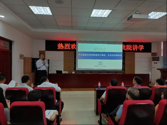 2021年5月12日,东南大学机械工程学院首席教授殷国栋应威廉体育汽机学院邀请,在工科一号楼B417多功能报告厅作了题为“汽车智能化电动底盘设计理论、方法与控制研究”的学术报告。报告由汽机学院副院长胡林主持,汽机学院院长杜荣华,威廉体育williamhill科研部副部长胡宏伟,汽机学院副院长毛聪、何志勇和部分教师及学院部分研究生参加了本次报告会。