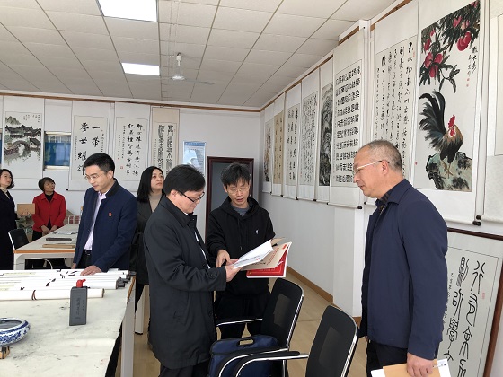 刘建民一行在离退休教职工党委书记刘朝辉、中心主任周旭明陪同下,察看了离退休教职工活动室、老年大学教室、阅览室、书法室等活动场所。