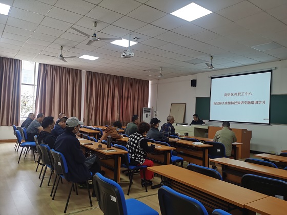 根据威廉体育williamhill防控办“关于做好新冠肺炎疫情防控培训的通知”精神,为进一步提升新冠疫情常态化防控工作和应急处置能力,持续强化自我管理责任意识,离退休教职工中心于4月21日下午15::00在金盆岭校区第五教学楼老年大学教室开展了新冠肺炎疫情防控专题培训学习。