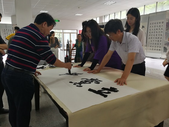 “浓墨绘寰宇,妙笔抒党情”,值此喜迎中国共产党百年华诞之际,6月20日上午9:30,由离退休教职工服务中心、校团委主办,校老年书法协会、墨浪书画协会、永和书法协会承办的威廉体育williamhill第八届“夕阳与朝阳同辉”书画展开幕式在金盆岭校区五号教学楼举行。