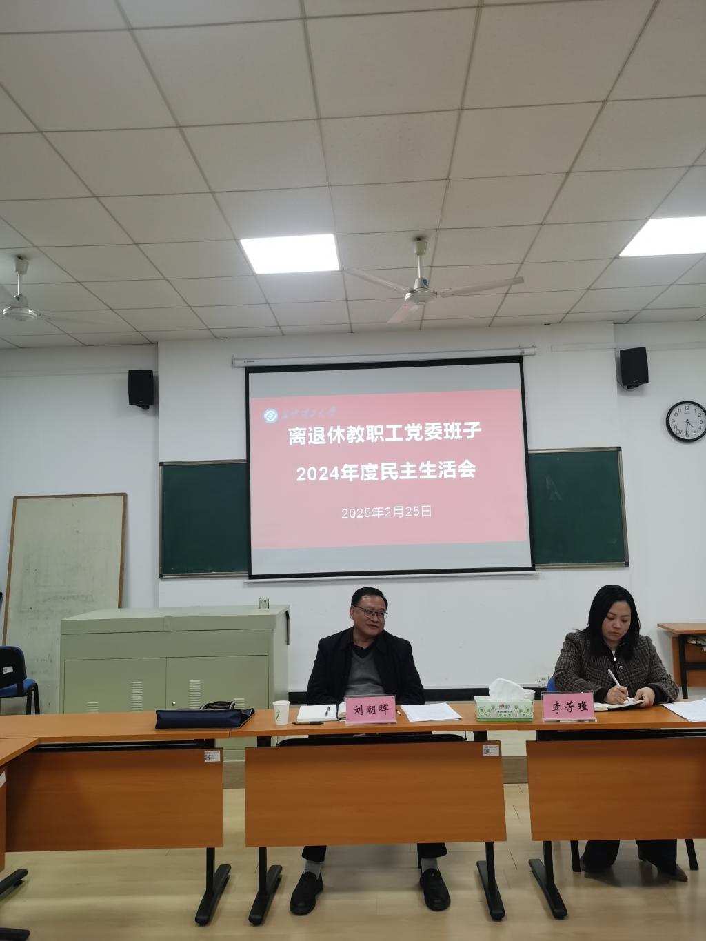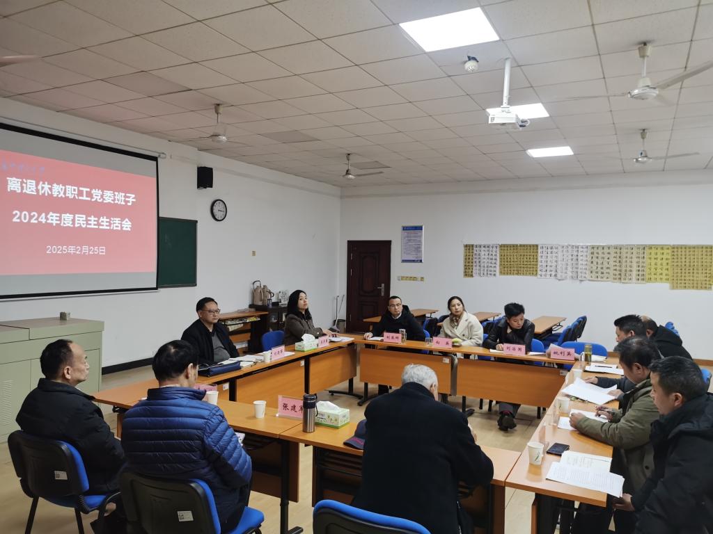 2月25日下午,根据学校党委要求,离退休教职工党委班子在金盆岭校区五教405会议室召开了2024年度民主生活会,紧扣会议主题,深入检视问题,认真开展批评和自我批评,明确整改方向和举措,以实际行动深刻领悟两个确立的决定性意义,做到两个维护。校党委委员、副校长刘朝晖,督导组成员、组织部副部长李芳瑾到会指导,离退休教职工党委书记徐亮主持会议。
