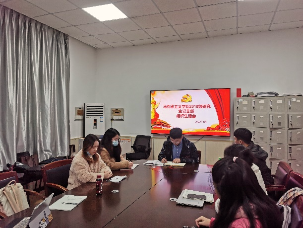 1月6日下午,马克思主义学院2019级研究生党支部在金盆岭校区四教501召开“学习践行伟大建党精神”专题组织生活会。本次组织生活会由2019级研究生党支部书记李袁远主持,2019级研究生党支部全体党员、预备党员参加了本次会议。