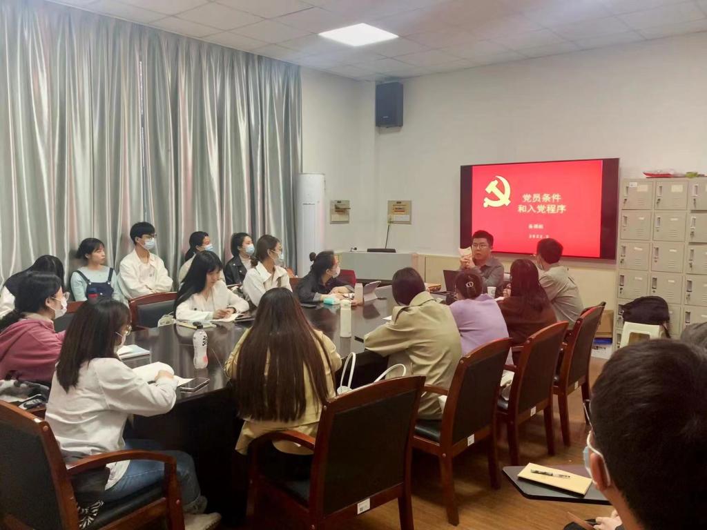 2022419日晚19:00,马克思主义学院2022年上期入党积极分子培训班于金盆岭4503开展关于《党员条件与入党程序》的学习,本次教学理论课学习活动由设计艺术学院的陈鑫宇老师主讲,马克思主义学院2022年上期全体入党积极分子参加,党员代表郑进、杨珺、吴彩虹负责监督。